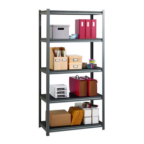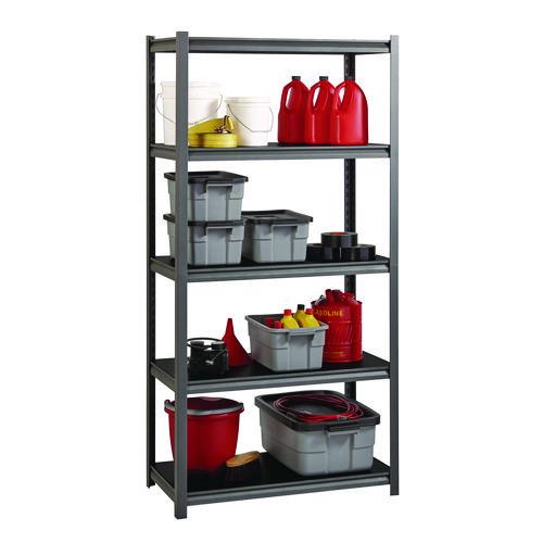 Steel Shelving Unit with Laminate Shelves, Five-Shelf, 36w x 18d x 72h, Steel, Black/Gun Metal Gray