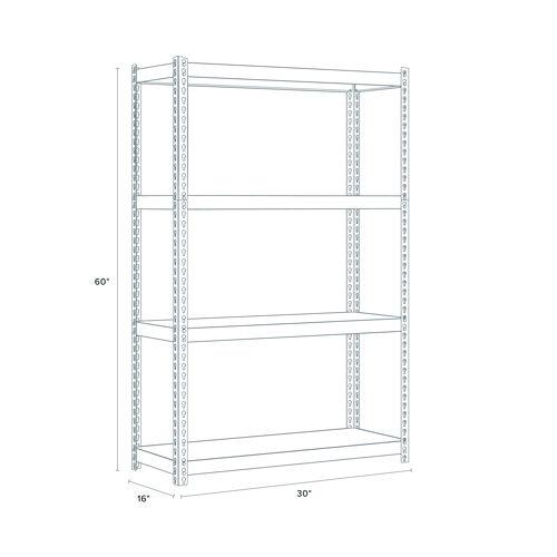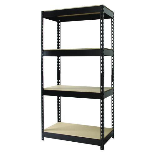 Steel Shelving Unit with Particleboard Shelves, Four-Shelf, 30w x 16d x 60h, Steel, Black