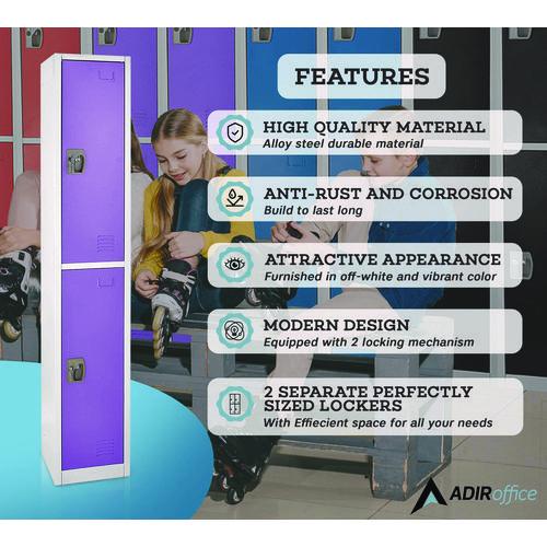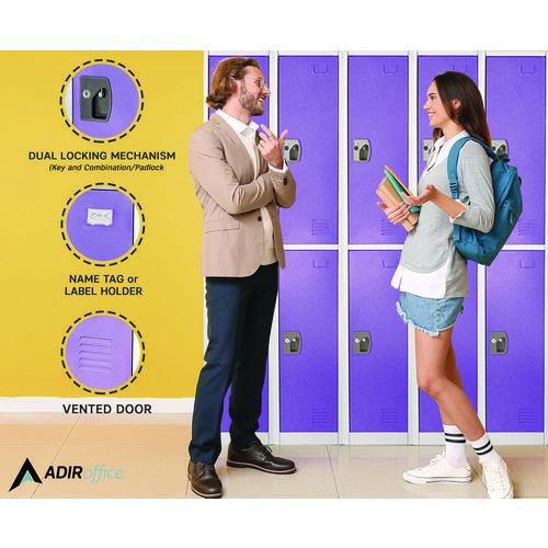 Crafted from high-quality steel, this locker is built to last and withstand the test of time. It is available in seven vibrant colors, making it a stylish addition to any office or school environment. With ample storage space for textbooks, clothes, personal belongings, and more, this locker ensures that your items are always organized and secure. Each locker door can be locked independently with included keys or accompanying locks, providing optimal security for your peace of mind. The minimalist design of our locker makes it suitable for a wide range of spaces. They all come equipped with coat and bag hooks, making organization easy and accessible. Proper air circulation is enabled with vented doors, keeping your items fresh and dry all day long. Additionally, each door features a metal nameplate that can be used for locker assignments or personalization. Assembling the locker is a breeze too with complete instructions and installation guidance.