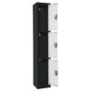 Steel Storage Locker, 3 Compartment, 12 x 12 x 72, Black Body/White Doors