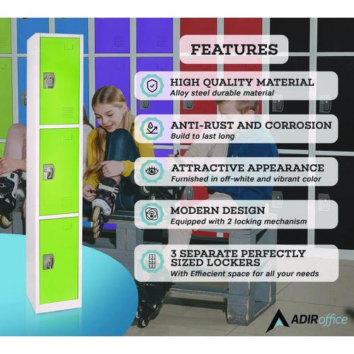 Crafted from high-quality steel, this locker is built to last and withstand the test of time. It is available in seven vibrant colors, making it a stylish addition to any office or school environment. With ample storage space for textbooks, clothes, personal belongings, and more, this locker ensures that your items are always organized and secure. Each locker door can be locked independently with included keys or accompanying locks, providing optimal security for your peace of mind. The minimalist design of our locker makes it suitable for a wide range of spaces. They all come equipped with coat and bag hooks, making organization easy and accessible. Proper air circulation is enabled with vented doors, keeping your items fresh and dry all day long. Additionally, each door features a metal nameplate that can be used for locker assignments or personalization. Assembling the locker is a breeze too with complete instructions and installation guidance.