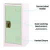 Crafted from high-quality steel, this locker is built to last and withstand the test of time. It is available in seven vibrant colors, making it a stylish addition to any office or school environment. With ample storage space for textbooks, clothes, personal belongings, and more, this locker ensures that your items are always organized and secure. Each locker door can be locked independently with included keys or accompanying locks, providing optimal security for your peace of mind. The minimalist design of our locker makes it suitable for a wide range of spaces. They all come equipped with coat and bag hooks, making organization easy and accessible. Proper air circulation is enabled with vented doors, keeping your items fresh and dry all day long. Additionally, each door features a metal nameplate that can be used for locker assignments or personalization. Assembling the locker is a breeze too with complete instructions and installation guidance.