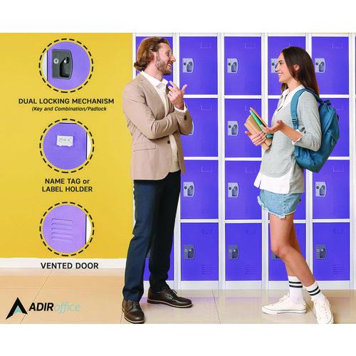Crafted from high-quality steel, this locker is built to last and withstand the test of time. It is available in seven vibrant colors, making it a stylish addition to any office or school environment. With ample storage space for textbooks, clothes, personal belongings, and more, this locker ensures that your items are always organized and secure. Each locker door can be locked independently with included keys or accompanying locks, providing optimal security for your peace of mind. The minimalist design of our locker makes it suitable for a wide range of spaces. They all come equipped with coat and bag hooks, making organization easy and accessible. Proper air circulation is enabled with vented doors, keeping your items fresh and dry all day long. Additionally, each door features a metal nameplate that can be used for locker assignments or personalization. Assembling the locker is a breeze too with complete instructions and installation guidance.