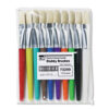 These stubby brushes are ideal for young children or beginner artists. Handles come in colors for an attractive appearance. Handles are also color coded to match Creative Arts™ spill proof paint cups. Brushes feature either flat or round hog bristles for smooth brush strokes and even application of color. Seamless aluminum ferrules hold the bristles firmly in place. Bristles are washable for an extra long life.