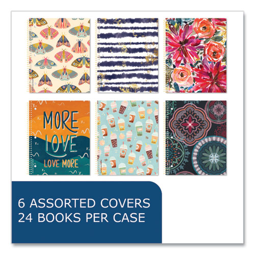 Spark your creativity with the Studio Series! Unleash your inner artist with the Studio Series notebooks, featuring six stunning, full-color designs by talented female artists. Each notebook boasts heavyweight 20 lb paper that lays flat and resists bleed-through, perfect for all your writing and sketching needs. The sleek gold wire spiral binding offers durability and a touch of elegance, while the 3-hole punched and perforated pages allow for easy organization and tear-out. Choose from on-trend designs to match your unique style, making every note-taking session a creative adventure. The Studio Series is the perfect companion for students, artists, or anyone who wants to add a touch of inspiration to their everyday life.