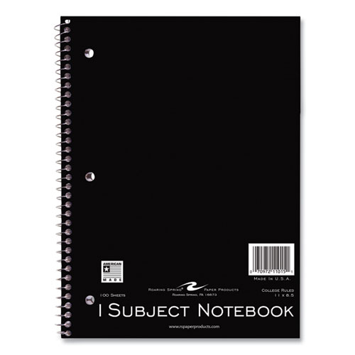Subject wirebound notebook. Smooth, white, 15 lb writing paper is college ruled with a red margin line. Covers are printed on a bright board. Wire ends are coil-locked for snag-proof performance.