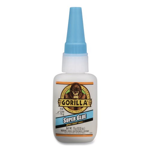 High strength and quick set time make Gorilla Super Glue the go-to for a variety of projects. Developed for long-lasting repairs in an instant, and designed with an impact-tough formula to handle bumps and drops with a strong, reliable bond. Anti-clog cap keeps glue from drying out. Fast-setting and dries in 10-45 seconds with no clamping required. Versatile and bonds plastic, wood, metal, ceramic, rubber, leather, paper, and more. It’s Gorilla Tough use after use.