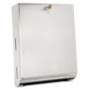 Dispenses 400 C-Fold or 525 Multifold towels measuring 3 1/8″ to 3 13/16″ without adjustment or adapters. Cabinet slots indicate refill time. Satin finish. Door has tumbler lock and piano hinge.