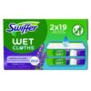 The Swiffer® TRAP + LOCK wet mop textured cloth traps and locks dirt deep inside. The cloth is safe on all finished floors and has a scrubbing strip to remove tough spots. Do not use on unfinished, oiled or waxed wooden boards, non-sealed tiles or carpeted floors because they may be water-sensitive.