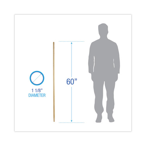 Precision-cut, tapered end broom handle. Natural colored, lacquered hardwood handle with smooth finish that resists splintering and is comfortable for extended use. Composed of solid hardwood for maximum durability and dependability for heavy-duty use applications. The rounded tip makes maneuvering and transport easy. Compatible with wood block brooms that support a tapered handle, which are sold separately.