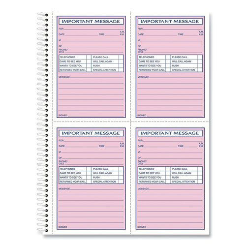 Quick check-off style with special area for fax and mobile phone numbers. Space for important phone numbers. Two-part carbonless copies remain in book as permanent record.