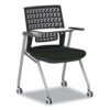 Nesting chair perfect for meetings, training, conference, classroom and more. Seat flips up for compact nesting and movement. Included tablet for ease of note-taking. Writing surface/tablet automatically moves into storage position as user moves. Flex back features flexible plastic backrest for additional seated comfort and gentle recline.