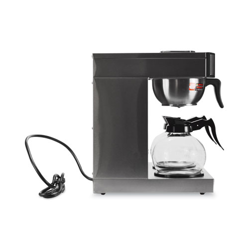 Includes independent warmers. Designed for high energy efficiency. Fresh water pour-over system. Grounded cord with three prongs. For high-capacity service. Decanters sold separately.