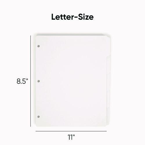 Three-Ring Binder Index Divider, 5-Tab, 11 X 8.5, White, 20 Sets