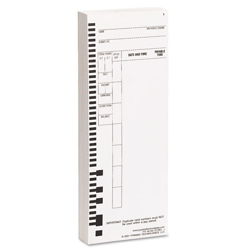 Time Clock Cards For Pyramid Technologies 4000, One Side, 3.5 X 8.5, 100/pack