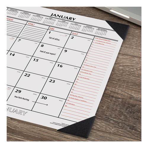 Two-Color Monthly Desk Pad Calendar, 22 x 17, White Sheets, Black Corners, 12-Month (Jan to Dec): 2025