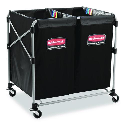 Two-Compartment Collapsible X-Cart, Synthetic Fabric, 2.49 cu ft Bins, 24.1″ x 35.7″ x 34″, Black/Silver