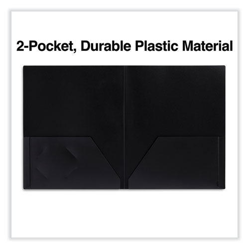 Two-Pocket Plastic Folders, 100-Sheet Capacity, 11 X 8.5, Black, 10/pack