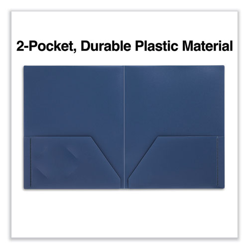 Two-Pocket Plastic Folders, 100-Sheet Capacity, 11 X 8.5, Navy Blue, 10/pack