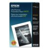 For photographers seeking a flat matte surface, Ultra Premium Presentation Paper Matte is the ideal choice. This bright white paper is perfect for images that do not require gloss. It yields highly saturated images, while maintaining excellent highlight and shadow detail. Designed primarily for use with UltraChrome™ Inks, EPSON Archival™ Inks, and DuraBrite™ Inks, this versatile paper can also be used with dye-based inks. Hobbyists, professional photographers and digital artists alike will find Epson Ultra Premium Presentation Paper Matte a remarkable solution for any project.