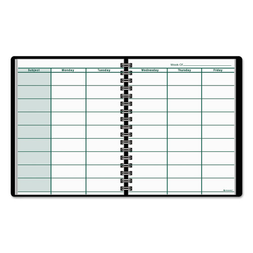 Great for busy teachers to plan their lessons and keep information organized. Space for nine subjects per two-page spread. Special pages include class record, 10-week grading record, seating chart and notes. Unruled daily blocks provide plenty of room for all types of information. Wirebound with black cover.