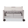 Great for office use or at home to support office appliances. Versatile machine stands are ideal for printers, fax machines, and personal copiers. Durable steel and wire construction. Four, two-wheel casters; two locking. Easy to assemble, transport, and consolidate after use. Features two convenient openings to route cords/cables and to use as a handle to pull from beneath worksurface.