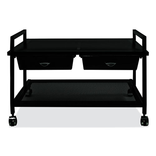 With durable steel construction, the Vertiflex® Underdesk Machine Stand is sturdy enough to hold a printer, fax machine or personal copier. Two drawers are conveniently located below the top shelf and can store printer supplies, specialty paper and more. The machine stand’s compact size fits under most workspaces and is easy to assemble. Easily rolls on four twin-wheel casters (two locking).