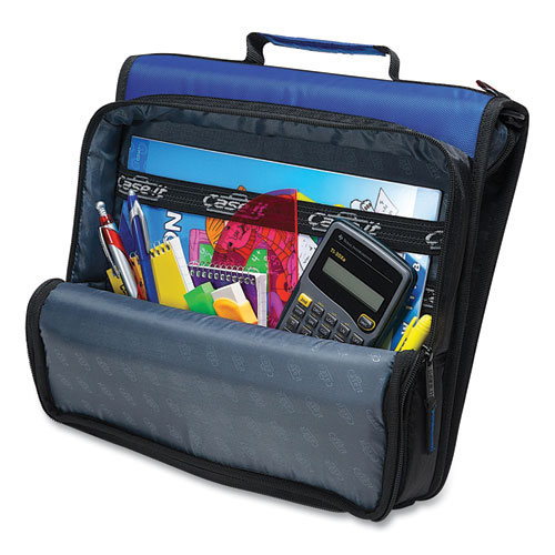 Get organized for classes or meetings. Be prepared, keeping everything close at hand, with this versatile zipper binder. Exterior front pockets accommodate laptops and tablets (up to 13″), text books, clothing, snacks… anything you might need. Two inside pockets offer quick access to school or office supplies. Rings open and close effortlessly, so papers can be rearranged at any time without wearing out the mechanism. Shoulder strap and built-in handle make transport easy.