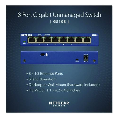 Unmanaged Gigabit Ethernet Switch, 16 Gbps Bandwidth, 192 Kb Buffer, 8 Ports