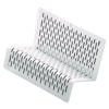 Strong, professional grade punched metal with decorative urban style slotted pattern. High quality satin finish complements any décor. Features protective feet to prevent surface wear and scratches on the desktop surface. Reinforced rounded edges provide durability and attractive detailing. Holds and stores up to 50 business cards for a professional presentation to your clients and customers.