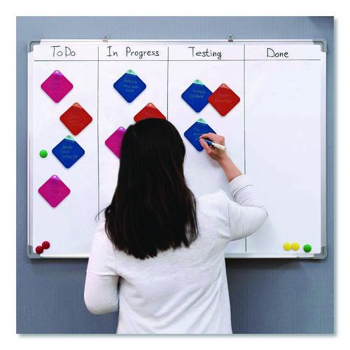 VersaNotes are the waste-free, reusable alternative to sticky notes. Simply write, remember and erase. One pack can replace endless amounts of paper sticky notes that cost money and end up in landfills. VersaNotes are ideal for reminders, short lists, quick notes, short lists, names and numbers. They are thin, flexible and reusable notes that stick to anything magnetic, including filing cabinets, metal frames, refridgerators, Kanban boards and more. VersaNotes come in bright colors that demand attention, and erase with a tap of the VersaPen (sold seperatey). They are durable and easy to clean/sanitize and resistant to spills and smudging. Use the included magnetic mounting plates on non-magnetic surfaces.
