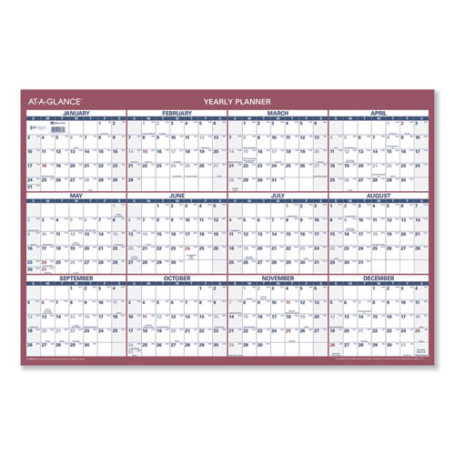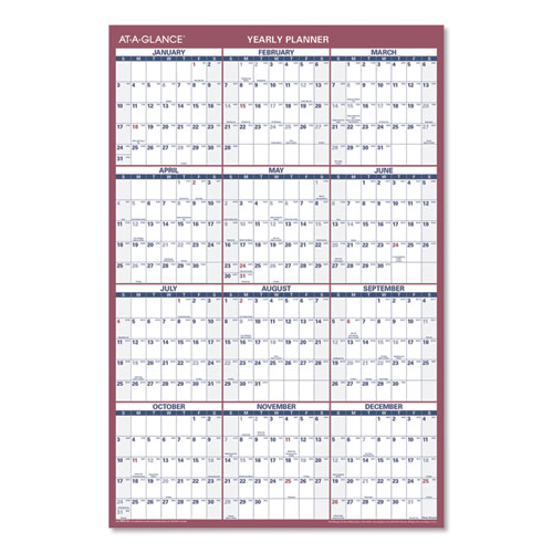 Vertical/Horizontal Wall Calendar, 24 x 36, White/Blue/Red Sheets, 12-Month (Jan to Dec): 2025