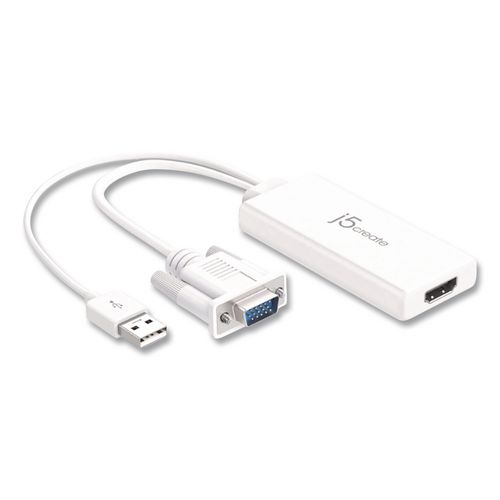 The JDA214 VGA to HDMI Video adapter allows you to connect the VGA input from your laptop or desktop to the HDMI output of a monitor or projector by converting the VGA video signal from the input device into a HDMI output and with a built-in USB power cable the device is powered using the USB port on your computer. The adapter supports resolutions including high definition 1080p, up to 1920 x 1200. The Adapter can also increase your productivity by extending your computer’s desktop onto a secondary monitor, doubling available workspace. This adapter has a high quality, compact design for long term durability and a minimal footprint, and with its plug-and-play technology there is no need to download any drivers.