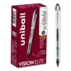 Create ideas as vividly as can be imagined with Vision Elite Rollerball Pens from uni-ball featuring a bend-resistant stainless steel tip and a tungsten carbide rollerball. Capped roller pens deliver smooth, intense lines with unparalleled definition – useful for note taking, list making, signing checks and legal documents, and even uniquely embellishing creative writing projects. Innovative uni Super Ink technology effectively entraps the gel ink into the paper, producing fraud, fade and water-resistant documents that resist check washing or bleaching. These Vision Elite pens have a special design that withstands cabin pressure variances without leaking, making them useful for travelers. Exclusive Uni-Flow Ink System ensures a consistent, delightfully fluid writing experience, and a translucent window ensures that you don’t run out of ink unexpectedly. Express your signature style with the sleek, modern design and elite performance of uni-ball’s Vision Elite Rollerball pen – no matter the altitude.