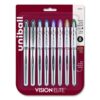 Create ideas as vividly as can be imagined with Vision Elite Rollerball Pens from uni-ball featuring a bend-resistant stainless steel tip and a tungsten carbide rollerball. Capped roller pens deliver smooth, intense lines with unparalleled definition – useful for note taking, list making, signing checks and legal documents, and even uniquely embellishing creative writing projects. Innovative uni Super Ink technology effectively entraps the gel ink into the paper, producing fraud, fade and water-resistant documents that resist check washing or bleaching. These Vision Elite pens have a special design that withstands cabin pressure variances without leaking, making them useful for travelers. Exclusive Uni-Flow Ink System ensures a consistent, delightfully fluid writing experience, and a translucent window ensures that you don’t run out of ink unexpectedly. Express your signature style with the sleek, modern design and elite performance of uni-ball’s Vision Elite Rollerball pen – no matter the altitude.