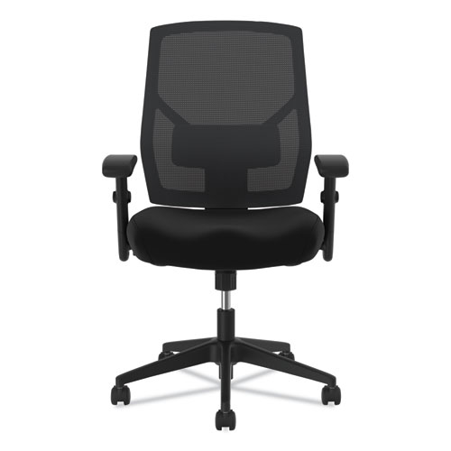 Breathable mesh back delivers cool comfort. Height- and width-adjustable arms customize your comfort. Adjustable lumbar support enhances lower back comfort. Simple, clean design gives any space a professional look. Reinforced five-star base offers incredible durability. Supported for users up to 250 lbs.