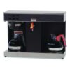 Plumbed, medium volume brewing solution with simple switch controls and low profile for under cabinet placement. Internal components are constructed from stainless steel. SplashGard® funnel deflects hot liquids away from the hand. Two individually controlled lower warmers to maintain beverage temperature. Brews up to 3.8 gal per hour. Hot water faucet feature for soups and other hot drinks. Decanters sold separately.