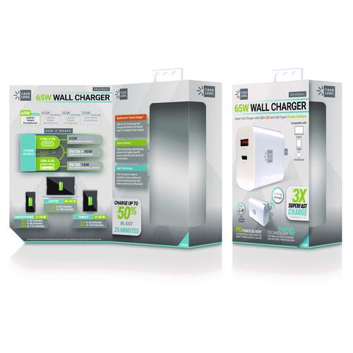Super-fast charger with USB-A QC and USB Type C Power Delivery. Qualcomm Quick Charge USB charges the battery the fastest way it is designed to be charged. Power Delivery automatically delivers the highest specific power required by the device it is connected to.
