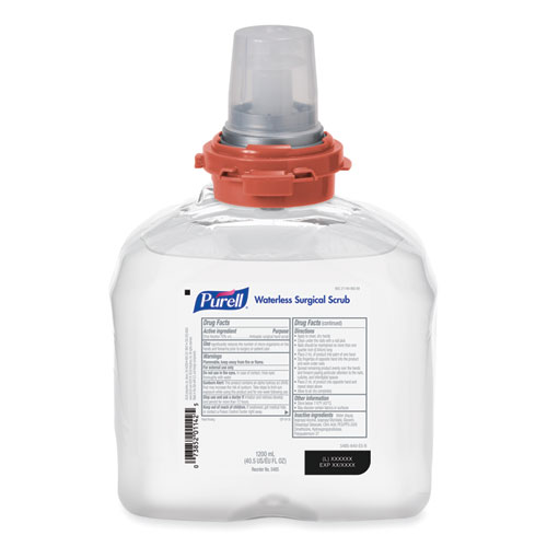 Waterless Surgical Scrub Gel Hand Sanitizer, 1,200 Ml Refill Bottle, Fragrance-Free, For Tfx Dispenser, 4/carton