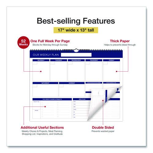 Weekly Family Planner, 17 x 13, White/Blue Sheets, 52 Weeks: Undated