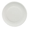 Affordable white uncoated paper plates. Lightweight design allows plates to be used for multiple purposes.
