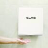 The Alpine Industries Willow Commercial Automatic Electric Hand Dryer is a high-speed automatic hand dryer with a unique design offering a blue light for hand drying efficiency. A HEPA filter cleans bacteria from intake air and the dryer is even equipped with a heat and speed control. With a less than 4″ depth, this hand dryer is ADA-compliant without the need of a recess kit. With a powerful 32,000 RPM motor, the Willow model will dry your hands in 10 seconds, faster than many comparable high-speed hand dryers and excellent for high-traffic bathroom areas. Saving thousands of dollars per year in paper towels and electricity, the Willow hand dryer is also equipped with a plug-in option for quick and easy installation. Hand dryer automatically activates when hands are placed beneath the sensor and stops when they are removed. Also features auto-stop function if hands are not removed after 63 seconds.