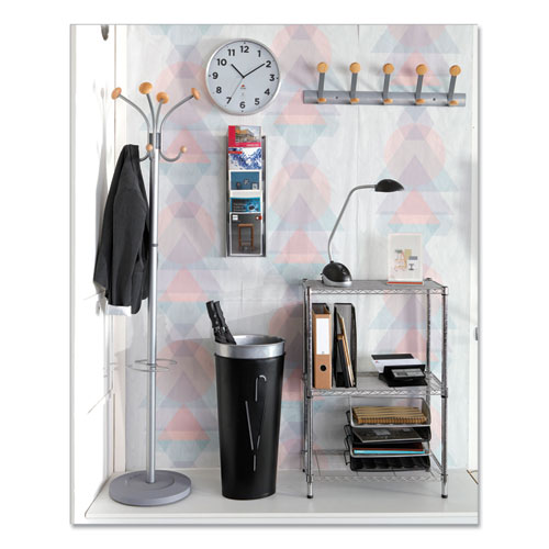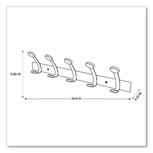 Gentle on your garments, thanks to its smooth, rounded wood tips. Accessory hooks add convenience. Very sturdy, can hang up to 45 lbs per hook. Stylish design blends seamlessly into any home or office environment. Elegant combination of metal and wood. Mounting hardware included.