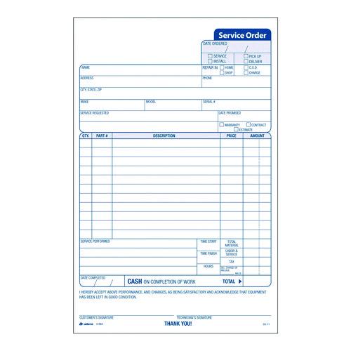 Work Order Form, Three-Part Carbonless, 5.66 x 9, 250 Sets/Pack